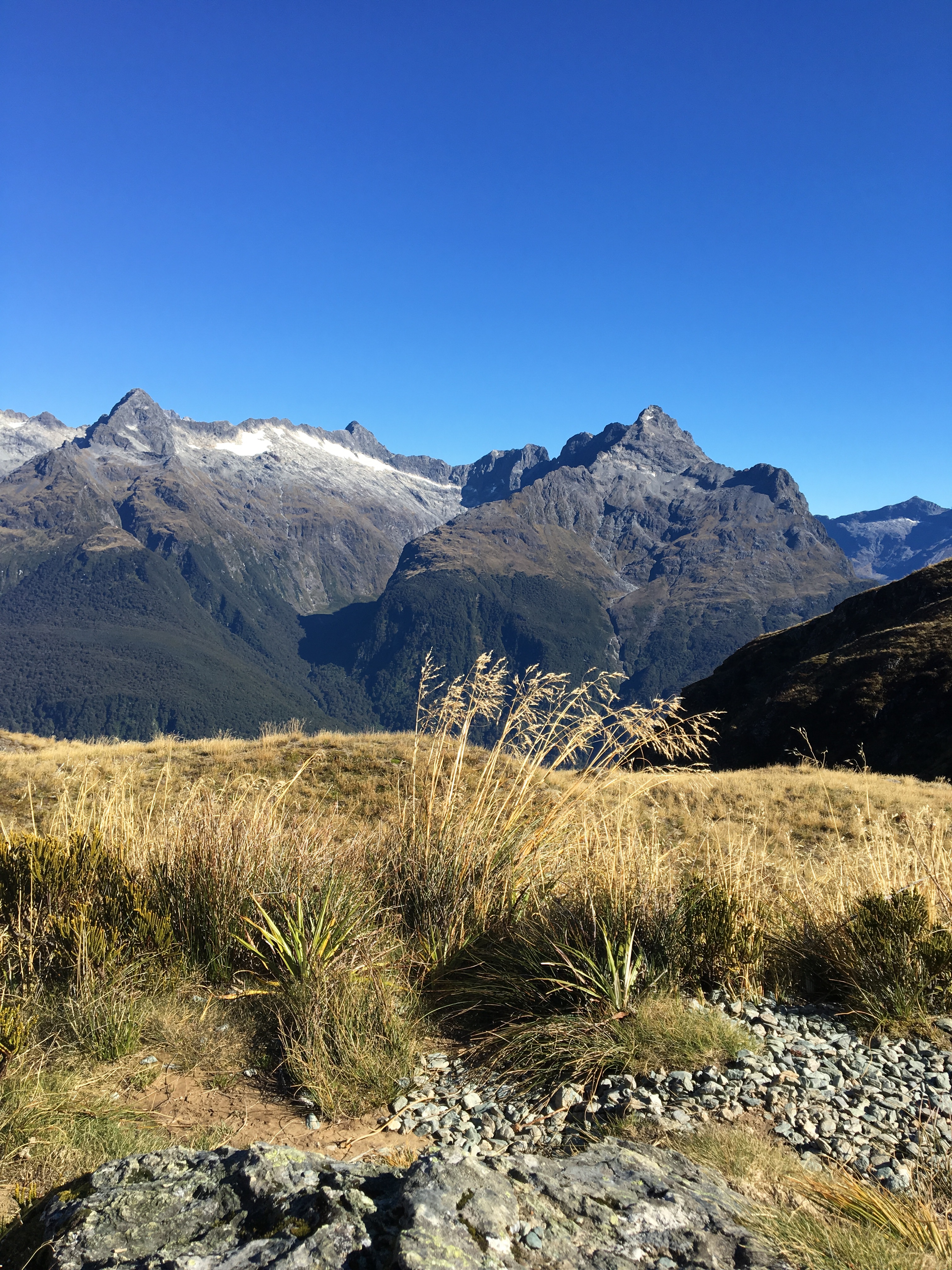 Tuesday, we woke up to one of the most stunning places I’ve ever seen. Our toes may have been frozen, but the beauty just about masked the pain. This was just the first of the many sights that awed us that day. Starting on the trail again at around 9am, we headed up and tramped on for a few hours before our first stop. We ended up stopping at all of the 5 huts along the track for a snack or just a quick rest. The views consisted of waterfalls, valleys, snow-capped mountains and lakes; half way through we ascended into Fiordland National Park. In total we did around 33km’s in about 8 hours. Wednesday we’ll finish the track, but for the night we stayed at the Lake Howden Hut. Met some pretty cool people at dinner and hit the bunks early for a well needed sleep!